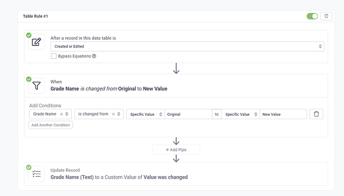 - Track Specific Changes: Trigger automations when field values change from one specific value to another