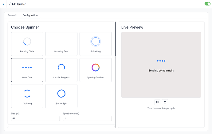 Choose from multiple spinner styles: