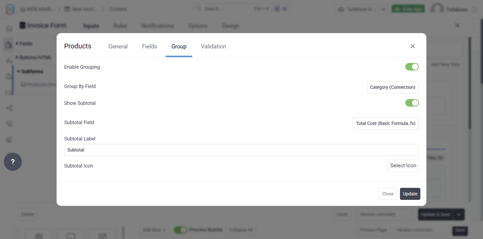 We’ve also introduced grouping capabilities, allowing subforms to be organized in a more structured format, with optional subtotals for improved visibility and reporting.