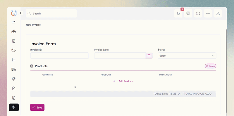 For example, when creating an Invoice, you can add all related Line Items within the same form, without needing to navigate away or create records separately.
